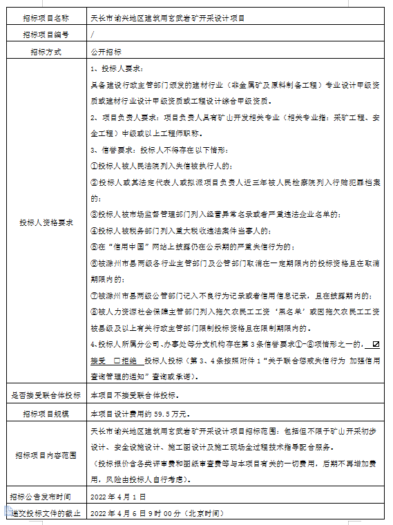 天長市諭興地區(qū)建筑用玄武巖礦開采設(shè)計項目招標公告